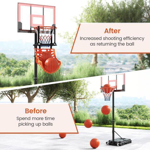 Easy Installation: The ball return attachment features a simple structure that makes setup a breeze just put together the return part and attach mounting brackets through screws. 4 convenient hooks ensure a stable fit on 18"/45 cm standard rims in seconds.