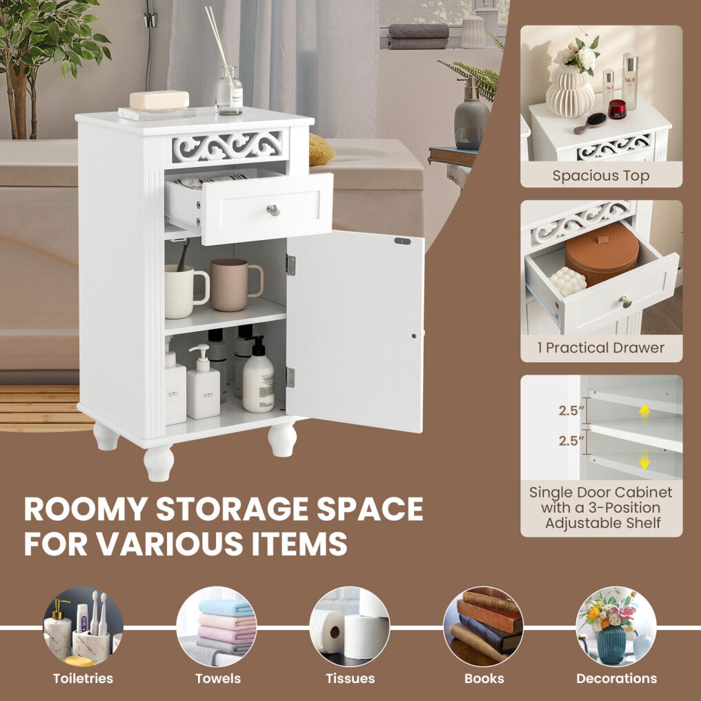 ● Large Storage Space: The cabinet has two-layer heights adjustable shelves storage space and a drawer for miscellaneous stuff storage. The perfect height makes it possible for you to place ornaments or books on this tabletop, considerately leaving extra storage space for you.
