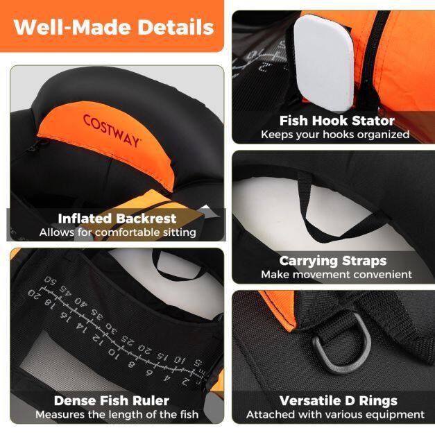 ● Enhanced Fishing Features: Elevate your fishing experience with the well-equipped belly boat featuring 2 side storage boxes, an adjustable fishing rod holder, a mesh fish ruler to measure your catch, and a fish hook stator to keep your gear organized.