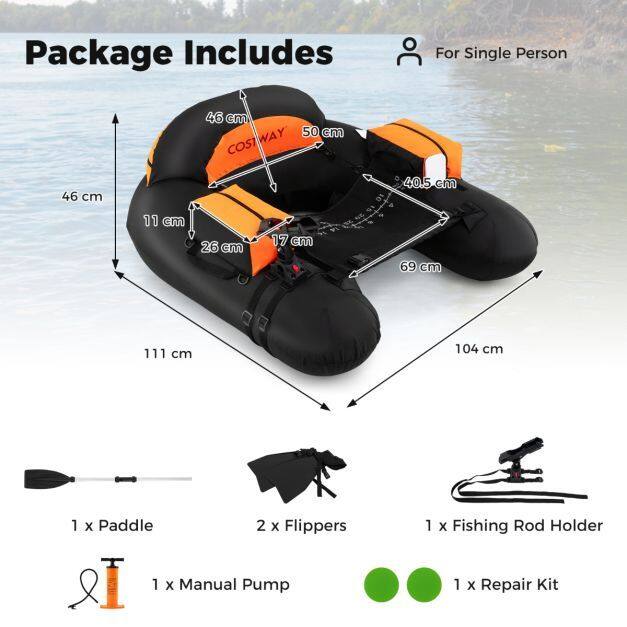 ● Low Maintenance & Versatile Use: Maintaining your belly boat is a breeze with the included repair kit, ensuring you can handle minor damages quickly. This tube is perfect for diverse activities, promising enduring performance whether you are floating on lakes, drifting down gentle streams, or navigating through quiet ponds.