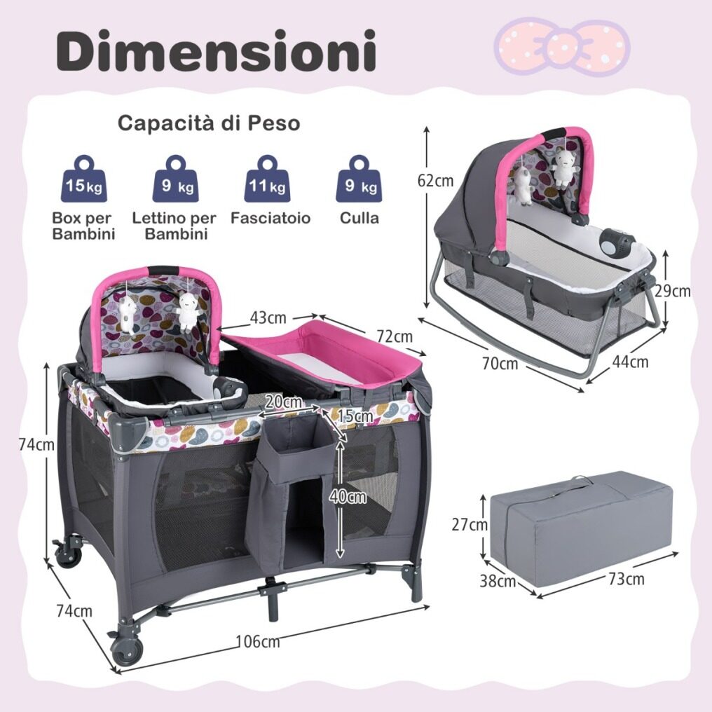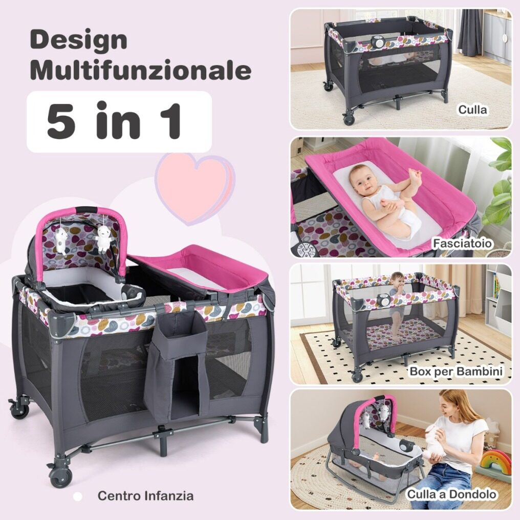 5-in-1 Multifunctional Design: This baby nursery includes a changing table, playpen, rocking crib, and bassinet, accommodating your baby's growth (0-3 years). The removable storage shelf is convenient for storing essentials like bottles, diapers, and other accessories.
