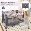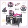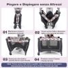 This baby nursery is a must-have for newborns! It combines a crib, changing table, playpen, and rocking cradle, meeting the needs of newborns up to 3 years old. Easily foldable without tools: 1. Hold the playpen upright. 2. Lift and lock the 4 sides. 3. Check that they are locked. 4. Press the bottom of the playpen. Includes a carry bag, perfect for travel or storage. It also features a music box and hanging toys for added entertainment, promoting baby's visual development and grasping ability.
