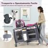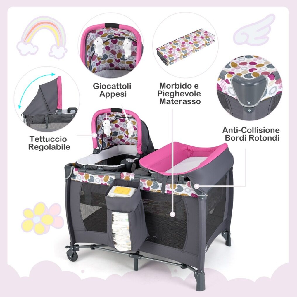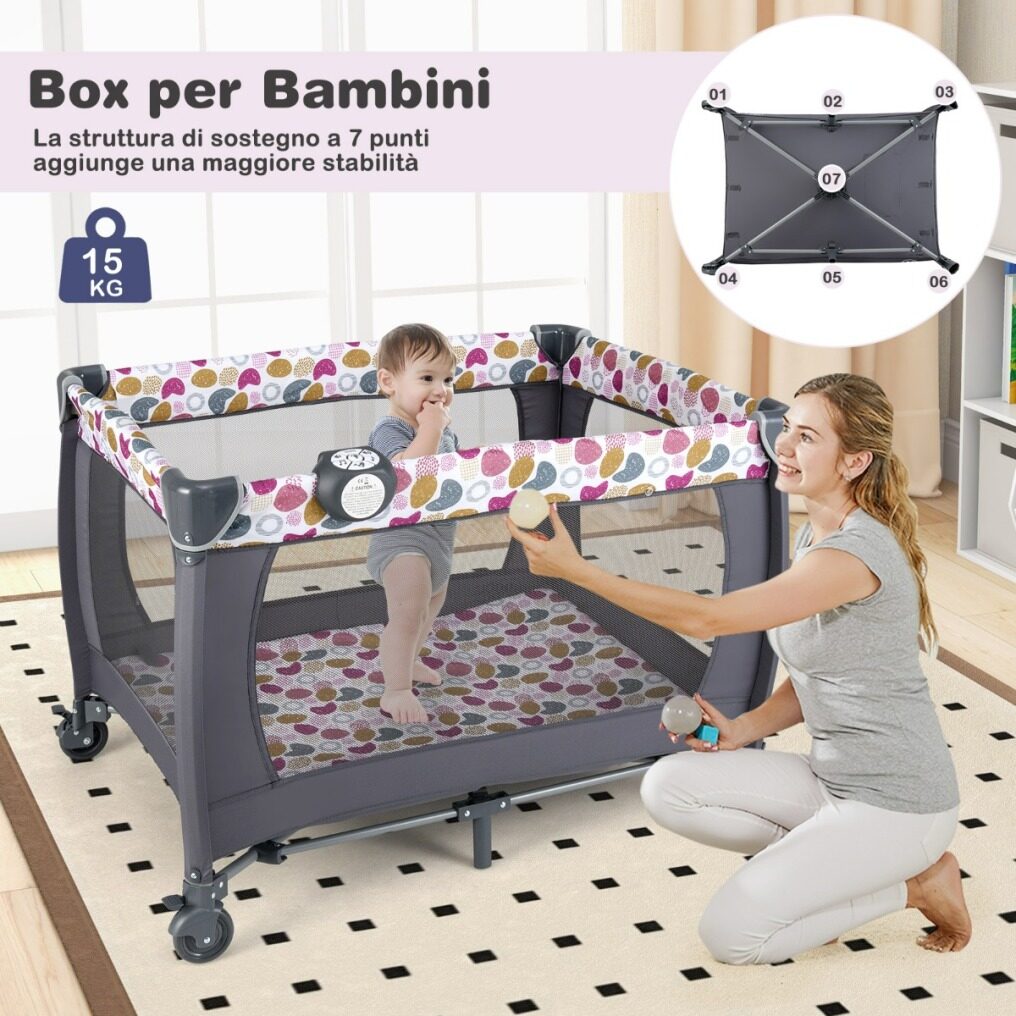 Stable Structure and Ease of Movement: The sturdy metal frame with 7-point support structure ensures greater stability. The breathable mesh on four sides ensures air circulation and allows parents to easily observe their baby. Equipped with 2 lockable wheels for easy movement.