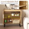 ● User-friendly Details: The rattan buffet cabinet features elegant metal handles for easy access and a refined touch. Its soft-close hinges ensure smooth, quiet operation, preventing doors from slamming shut.