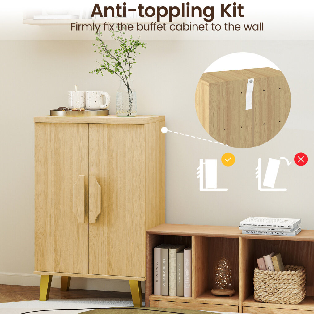 ● Reliable and Sturdy Structure: Supported by 4 solid legs, the accent cabinet remains remarkably stable on the ground. More importantly, the anti-toppling kit will firmly fix the buffet cabinet to the wall to prevent tipping over and enhance steadiness.