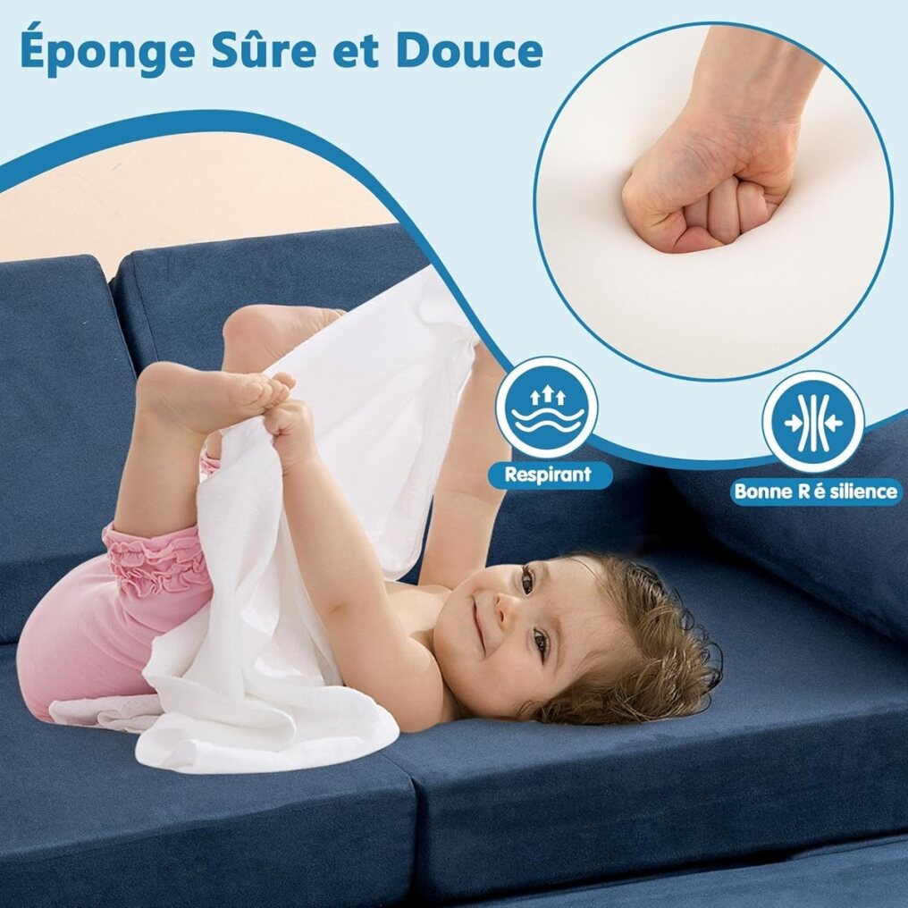 【Thick and Soft Padding】Our multifunctional sofa is padded with high-density sponge, which helps relieve pressure. Therefore, your child can enjoy a soft and low-impact velvet surface to crawl, jump, climb and play freely.