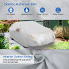 Superior Material Quality: Crafted with an aluminum film exterior, complemented by reinforced double stitches, the car cover offers UV, water, and tear resistance. Its soft cotton lining ensures your car’s finish remains pristine by preventing scratches.