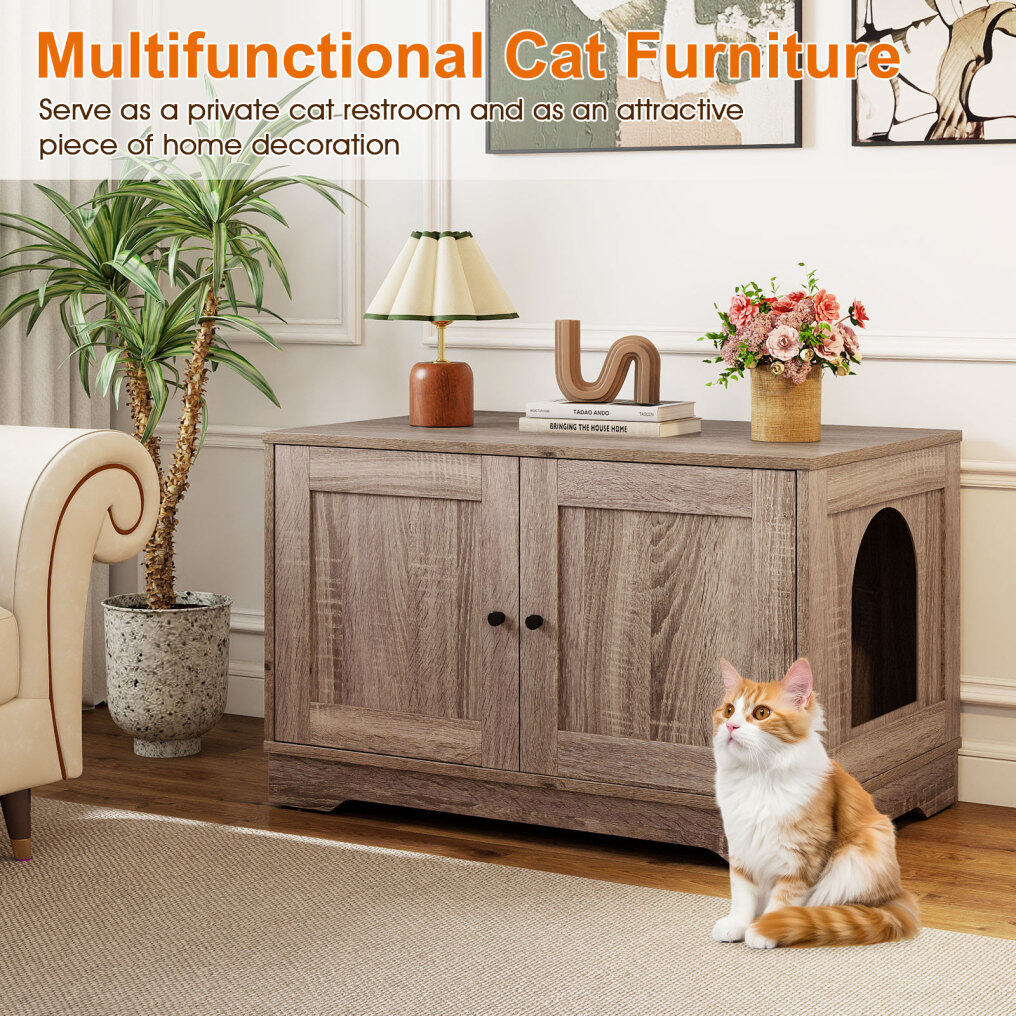 Easy Maintenance: This wooden cabinet with double doors swing open wide, making scooping and cleaning a breeze. The veneered board surface is smooth and easy to wipe down, so you can easily maintain a fresh and tidy environment for both you and your pet.