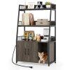Cat Litter Box Enclosure with Storage Shelves and Scratching Pad-Gray