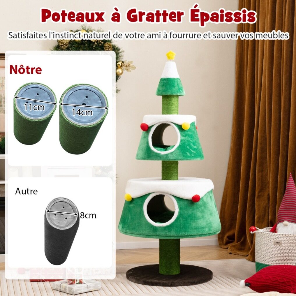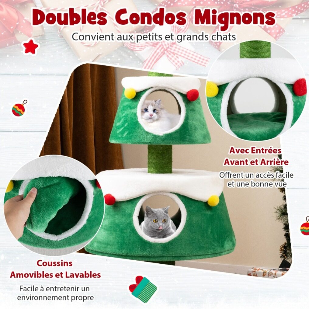 ● Spacious Double Condos: Equipped with 2 generously-sized condos, the cute Christmas cat tower provides the perfect retreats and elevated spots for your cats to rest or observe the surroundings. Each condo is designed with 2 entrances, front and back, to fulfill your cat's instinctive need for an escape route.