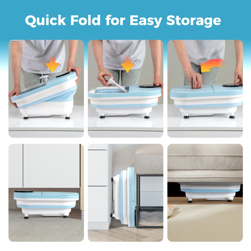 ● Collapsible & Portable Design: Enjoy spa-like relaxation anywhere with the foot spa massager that can be folded into a compact state of 16"L x 13.5"W x 6"H. Moreover, the foot soaker features a carrying handle for transitions from one room to another.