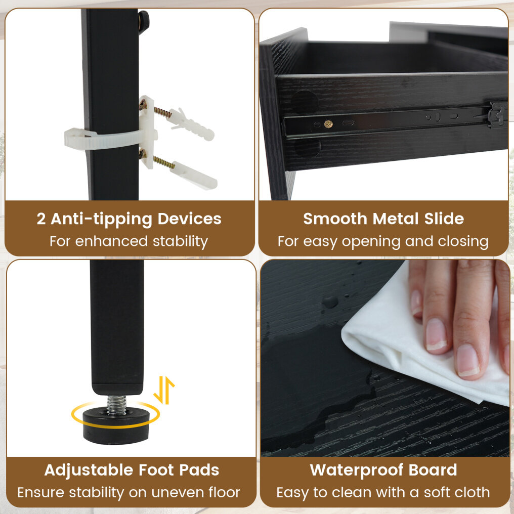 ● Upgraded Reinforcement: Compared with other desks, this writing desk is reinforced with X-shaped bracket for higher stability. When set against the wall, the study desk can be secured with anti-toppling device to prevent wobbling and ensure safety.