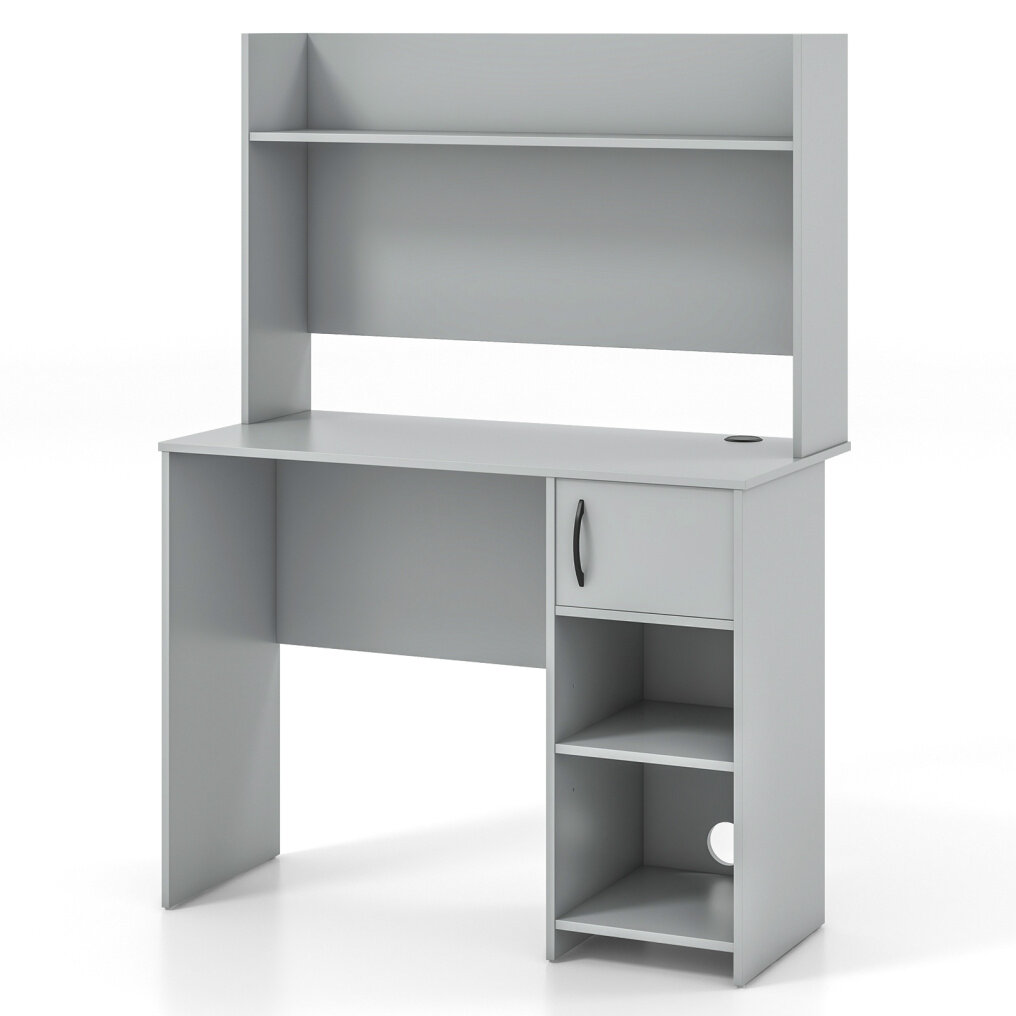 All-in-One Multifunctional Design: This computer desk comes with a wide desktop for all your working needs, complete with a cable management hole for tidying up pesky wires. Moreover, a raised display shelf, 2 open shelves and a cabinet with door make it ideal for storing a computer, office supplies, books, documents, plants, and decorations.