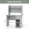 Are you looking for a versatile and stylish solution to your workspace needs? This all-in-one multifunctional design computer desk offers a wide desktop for all your working essentials. In addition, it comes with a raised display shelf, 2 open shelves, and a cabinet with a door for easy storage of your computer, office supplies, books, documents, plants, and decorations. Moreover, the 3-position adjustable shelf fit to store items with different sizes, and the removable middle panel can be utilized and suitable for computer host storage. Additionally, it is designed with more exquisite details, such as the anti-falling design, 2 wire holes for cable management, and a convenient handle for easy cabinet access. Therefore, this computer desk is suitable for various settings like the bedroom, home study, or office.