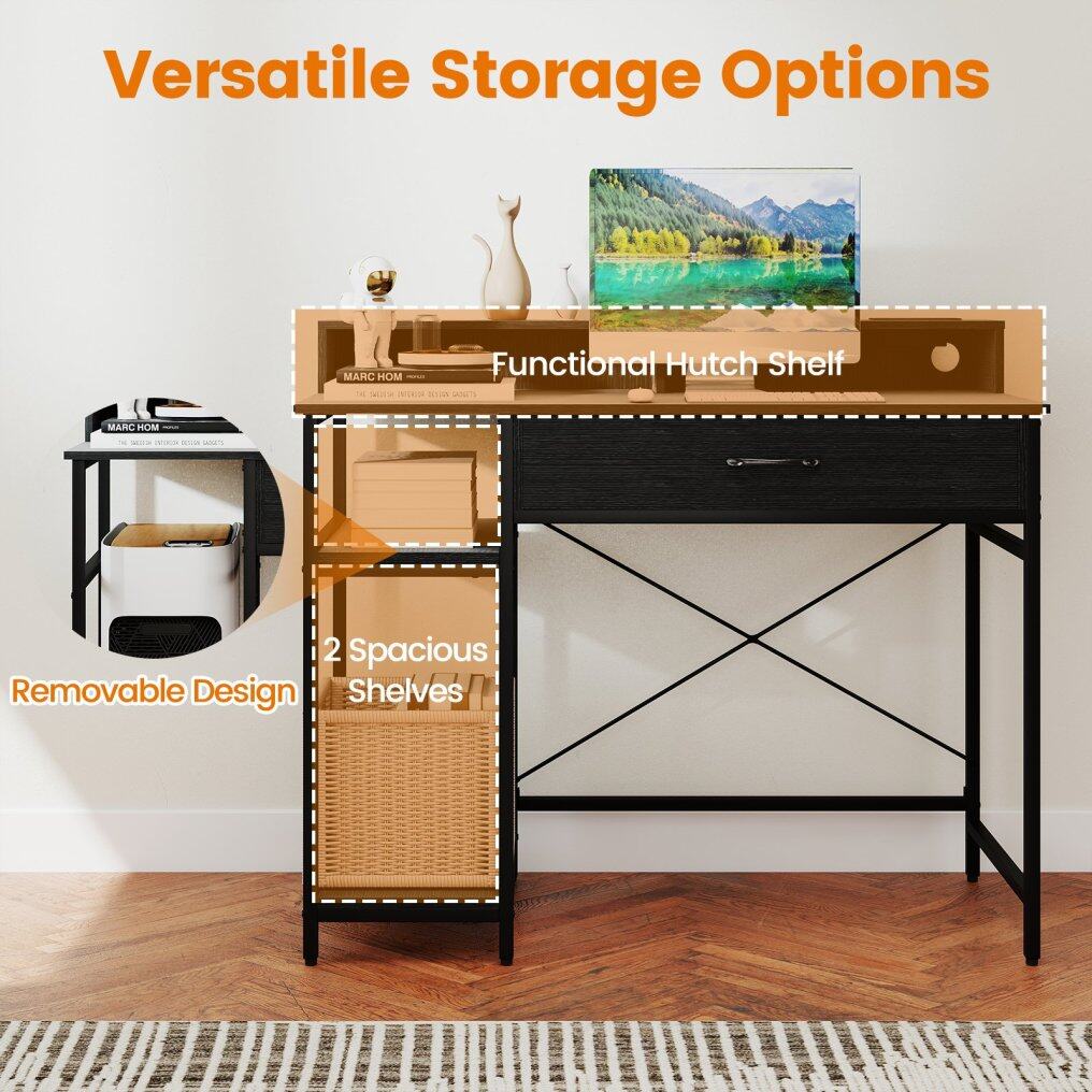 ● Flexible Storage: A roomy hutch, smooth-glide drawer and 2 open shelves turn this office into a clutter-busting command center. Need space for a full-size tower? Simply remove the middle shelf and slide it onto the lower tier of this study desk.