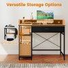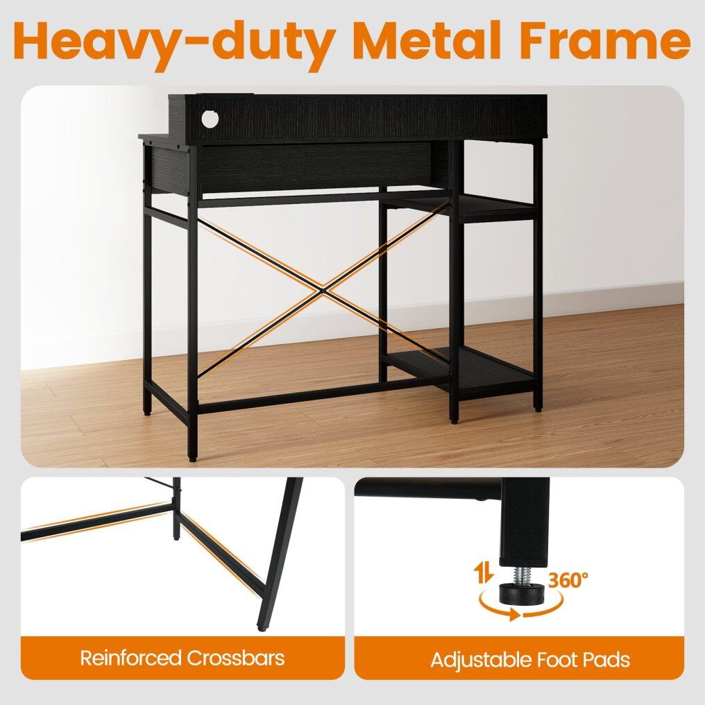 ● Built-in Power Strip: This computer desk features a power strip in the top shelf, giving you 2 AC outlets, 1 USB and 1 Type-C port right at your fingertips. No more crawling under the table to plug in your gaming gear—this PC desk with cable hole keeps every cable neat and ready for action.