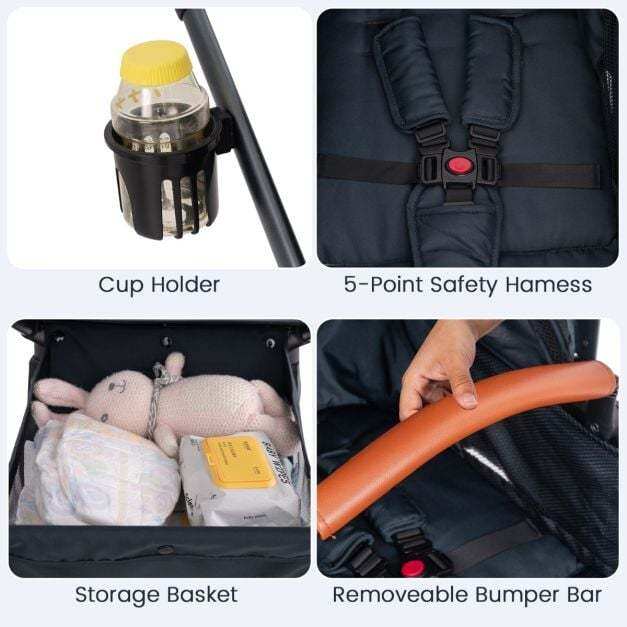 Easy Folding Mechanism: This foldable stroller is perfect for busy parents on-the-go. You can effortlessly fold and store it in your car trunk or at home in seconds, saving you time and hassle. Lightweight yet robust, this stroller is designed for convenience.