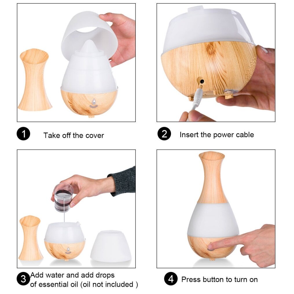 This is our wooden grain essential oils diffuser, which is with nice shape and unique design.