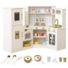 ● Child-friendly Design, Reliable Gift: Thanks to easy-grip pull handles and convenient door stoppers, the cabinets are easy to open or close. And the sturdy MDF construction with smooth rounded edges is built to last. Compliant with ASTM and CPSIA, this corner play kitchen will be a nice gift choice for growing children.