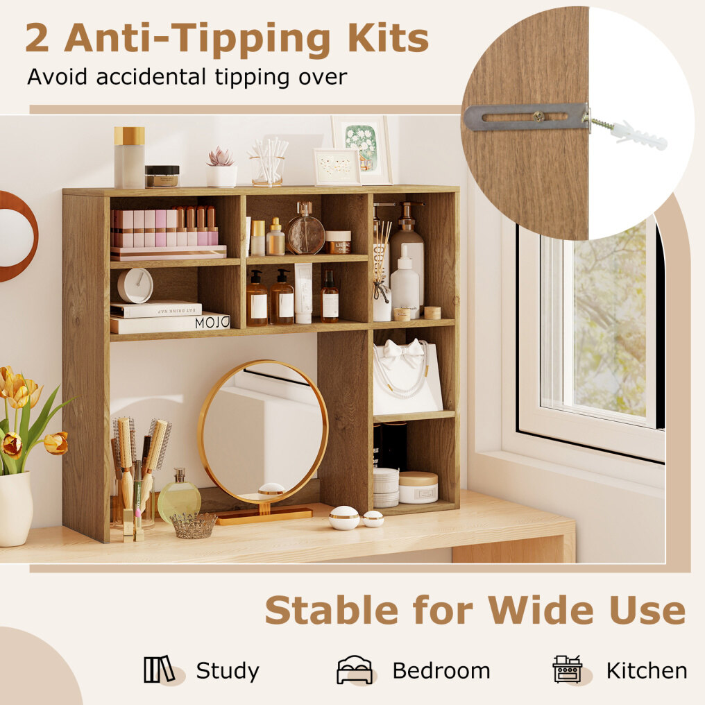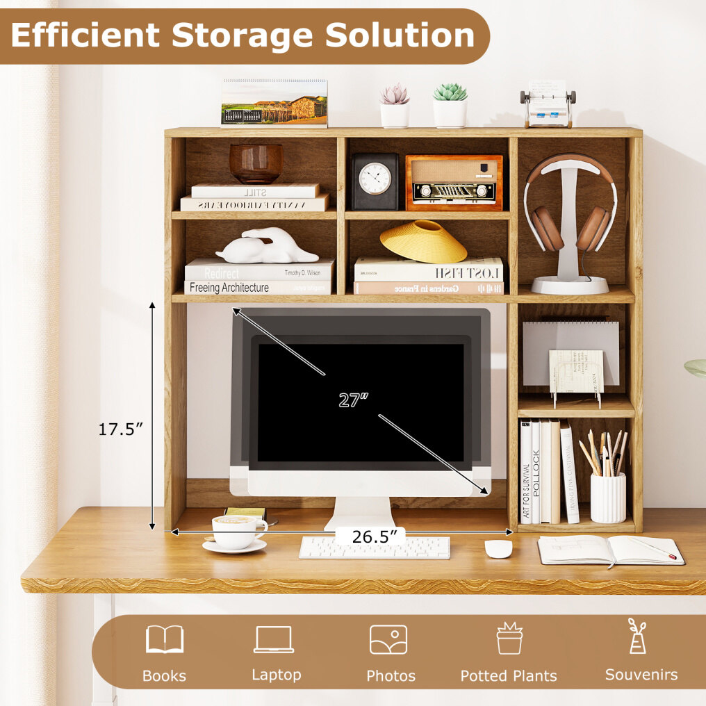● Flexible Storage Space: The desk bookshelf features a spacious top shelf and 7 open cubbies that provide sufficient storage and display options for daily supplies. Featuring 3 shelves that can be set in 5 positions within 1.2", this desk storage hutch adapts easily to items of various sizes.