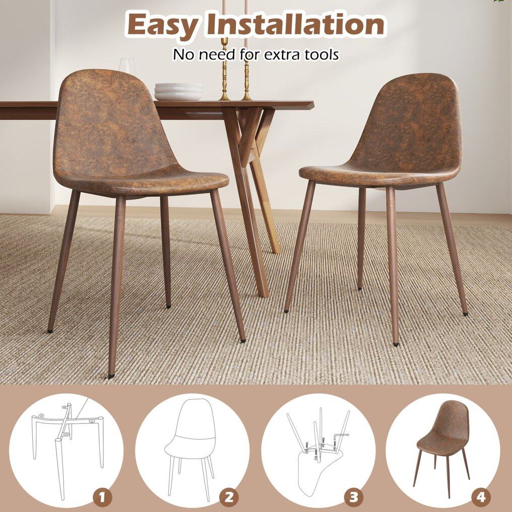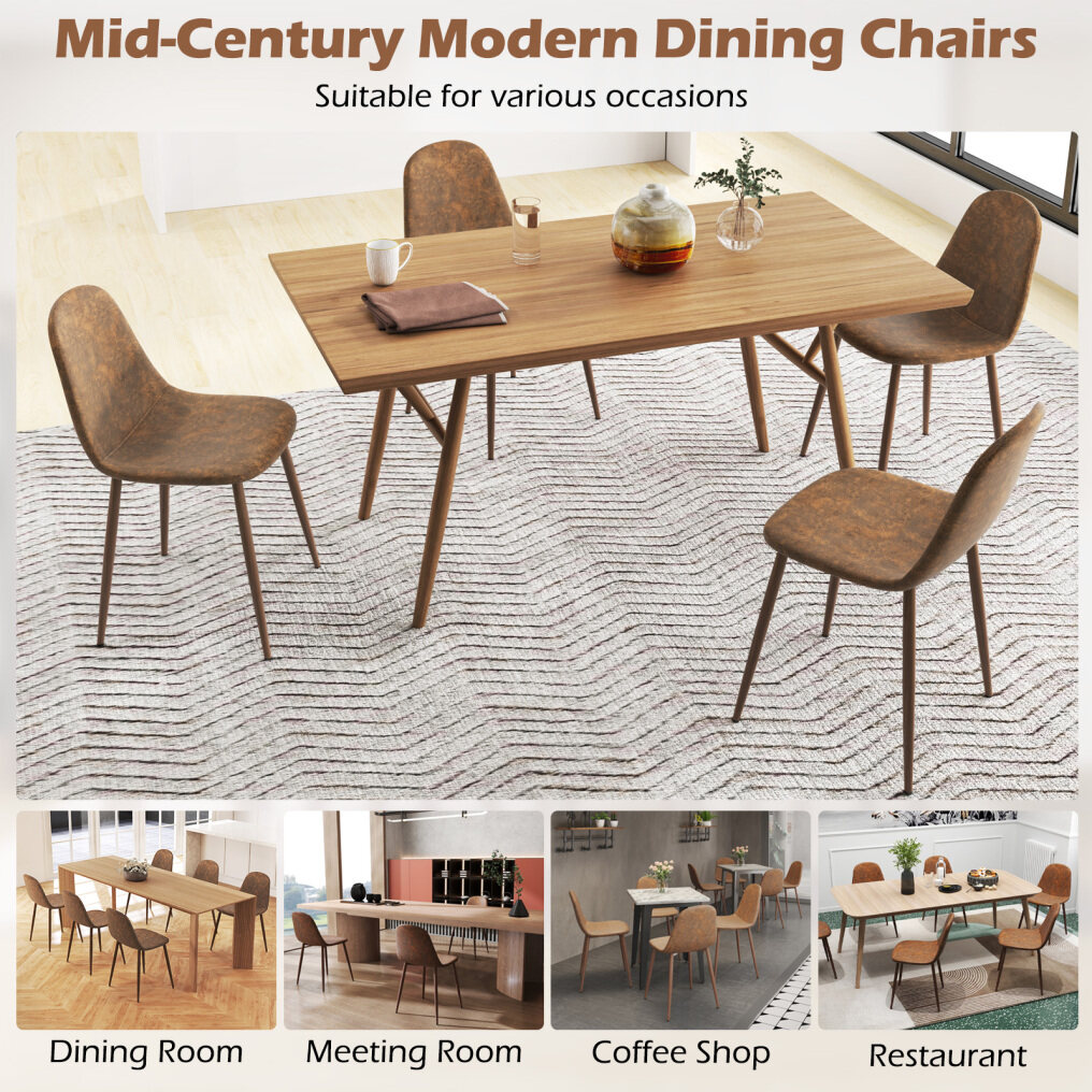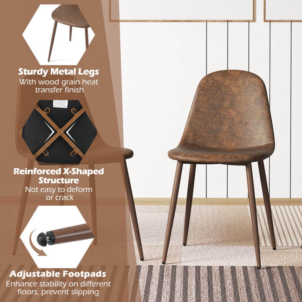 ● Stylish and Versatile Design: These mid-century modern dining chairs adopt brown seats, paired with metal legs featuring wood grain heat transform finish, which could elevate the aesthetic of your dining area. Whether for formal dining or casual gatherings, these chairs can be a perfect choice.