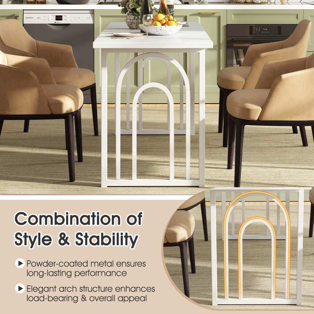 Elegant Piece of Furniture: Featuring architecturally inspired arch support frame and simple white finish, the rectangular dining table is ready to enhance the overall look of your dining area, such as your kitchens, restaurants, living rooms.