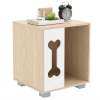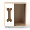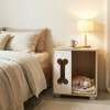 Cat Bed Side Table Wooden Cat Condo with Bone-shape Window and Thick Metal Legs-Natural
