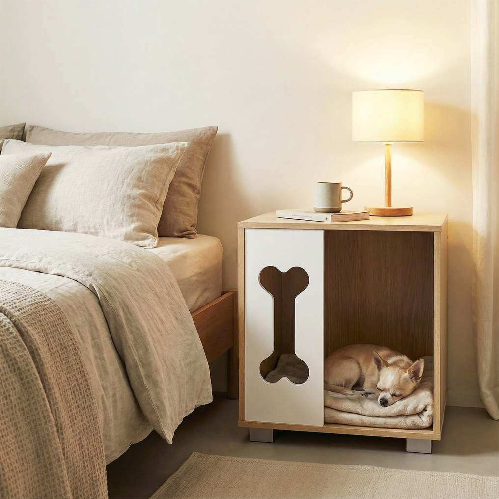 Modern Decorative Appeal: With clean lines and a muted color palette, the wooden cat house seamlessly elevates your living room or bedroom decorations. The whimsical bone-shape window not only adds a designer touch but also sparks conversation, making your pet's home a statement piece.