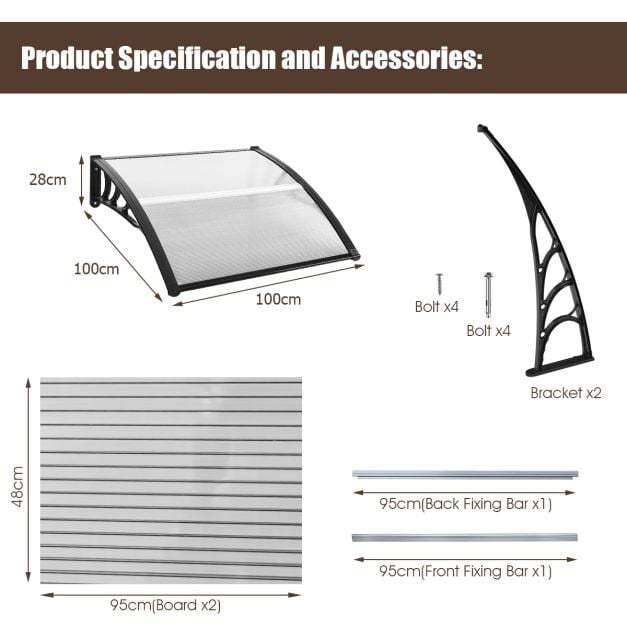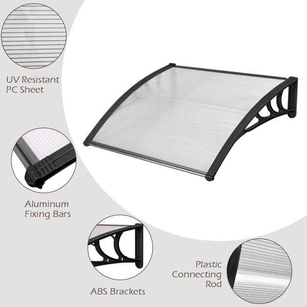 - With polycarbonate sheet and sturdy aluminum bracket, this canopy awning is weather-resistance and UV-protected