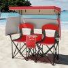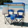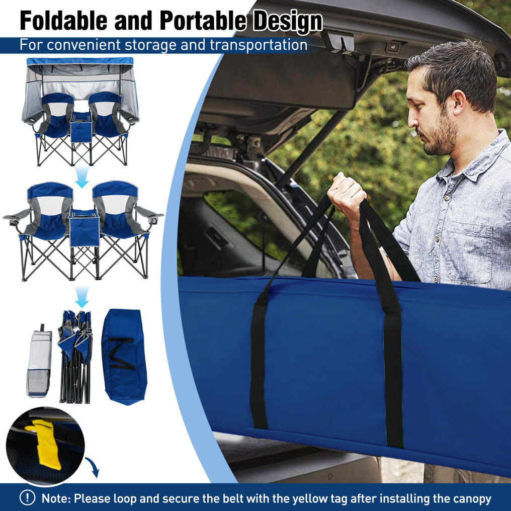 Adjustable Sunshade: This double beach chair features an adjustable canopy, crafted of premium polyester fabric with silver coating, offering excellent UPF50+ sun protection, while the tilting angle is adjustable, allowing you to block sunlight from all directions. Plus, the canopy is detachable for different needs.