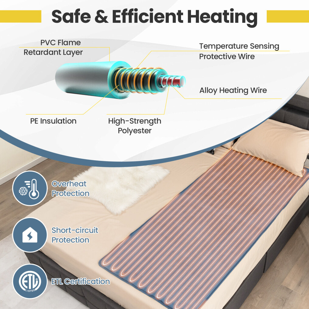 ● Convenient to Use: The electric heated pad is easy to operate by the controller, which allows you to change the settings without leaving where you are. The 2 ft controller cord and 5 ft power cord make it flexible to use. Leave the chill behind with this ETL certified electric mattress pad.