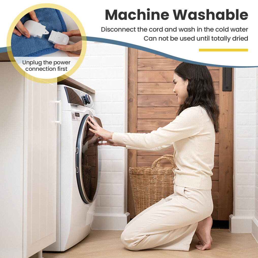 ● Machine Washable: The electric heated mattress pad is machine washable after the powder cord disconnects. Plus, 2 convenient fixing straps on the bottom keep it in position. Recommended bed size: 71" x 30".