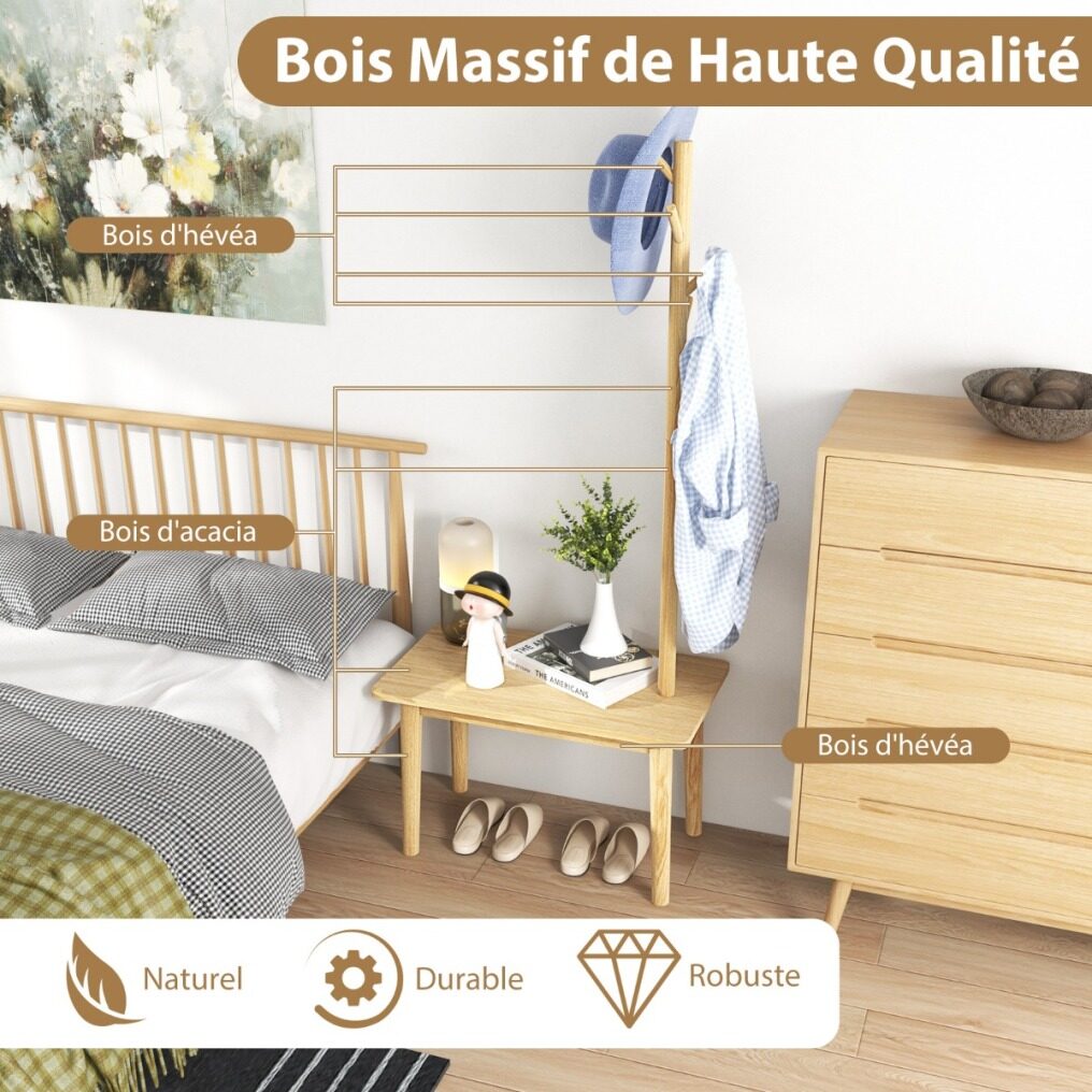 ● Solid Wood Construction: Crafted from natural rubber wood and acacia wood, the coat rack with side table is durable and sturdy. In addition, the reinforced connections enhance overall steadiness.