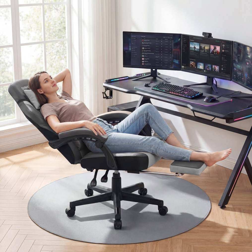 ● Plush Padding: Sink into comfort with elastic sponge cushioning that supports without feeling stiff, helping you stay comfortable through long hours. Moreover, the video game chair is upholstered in skin-friendly PVC leather designed to feel smooth against the body and easy to maintain.
