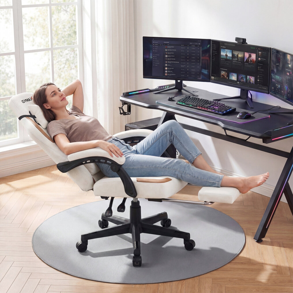 ● Custom Recline & Seat Height: Dial in your comfort in seconds with a 135° reclining backrest that lets you switch from focused upright play to laid-back breaks. The game chair's seat swivels smoothly so you can turn to talk to teammates without strain, while the 18"-20.5" height adjustment helps you match your desk setup.
