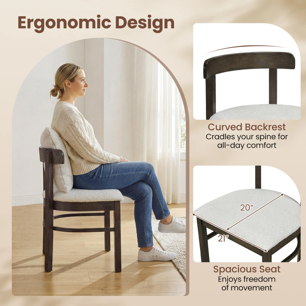 ● Comfy & Ergonomic Design: The fabric upholstered dining chairs are designed with a contoured backrest that mirrors your spine's natural curve, offering exceptional lower back support. Additionally, the ample seating area encourages proper posture and relaxation.