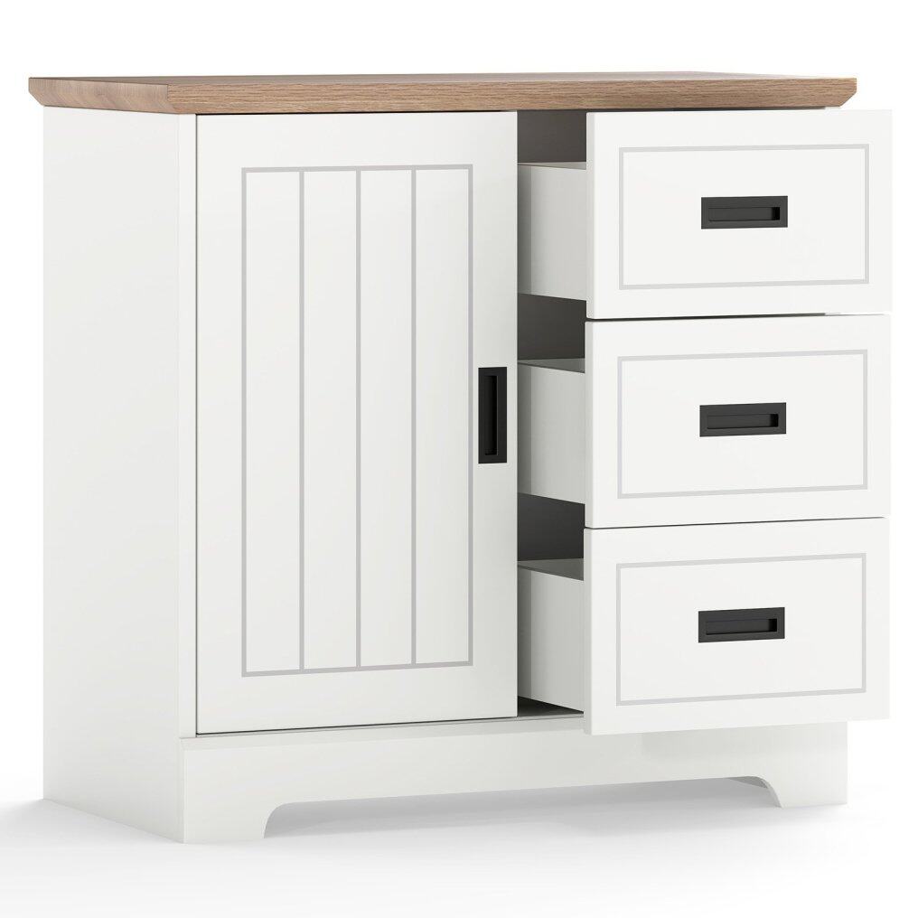 ● Multiple Storage Options: This sideboard features 3 large drawers that provide hidden storage space for dinnerware and kitchen gadgets. Besides, the wide cabinet top facilitates the placement of appliances and decorative items.