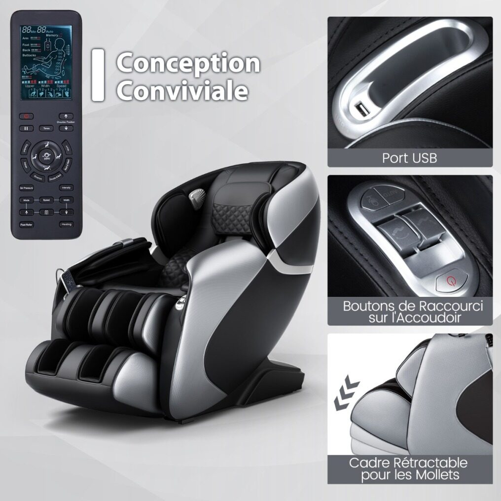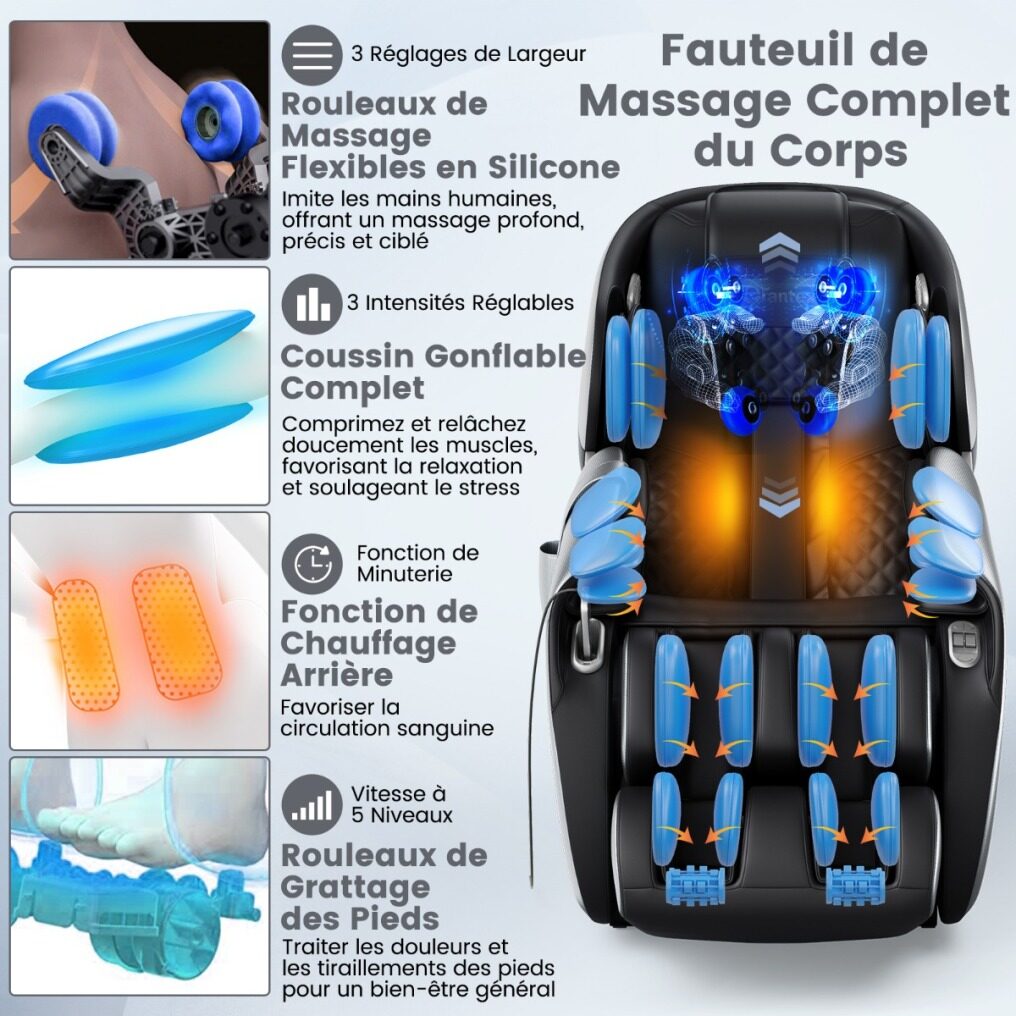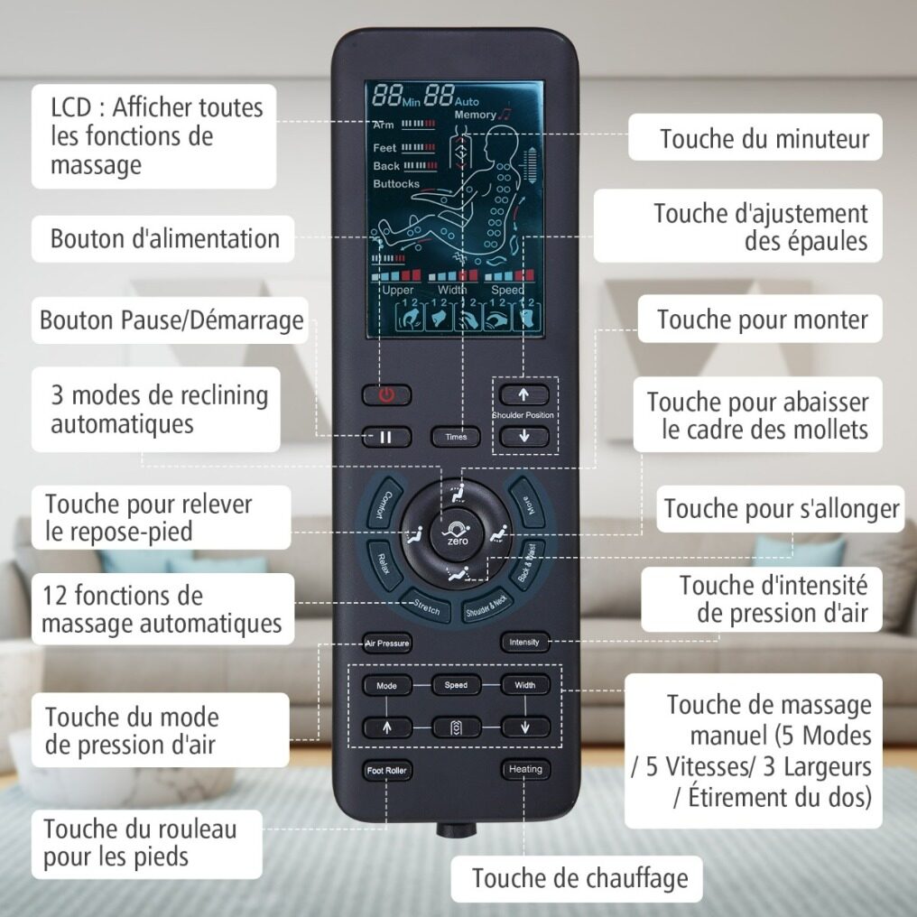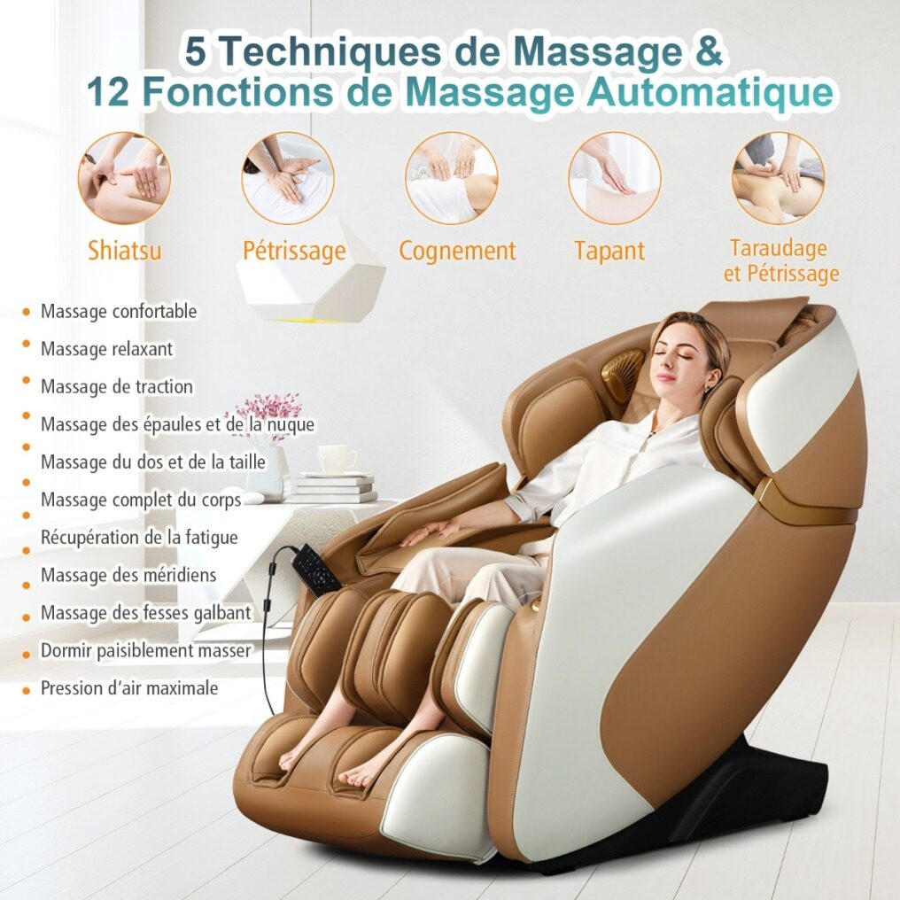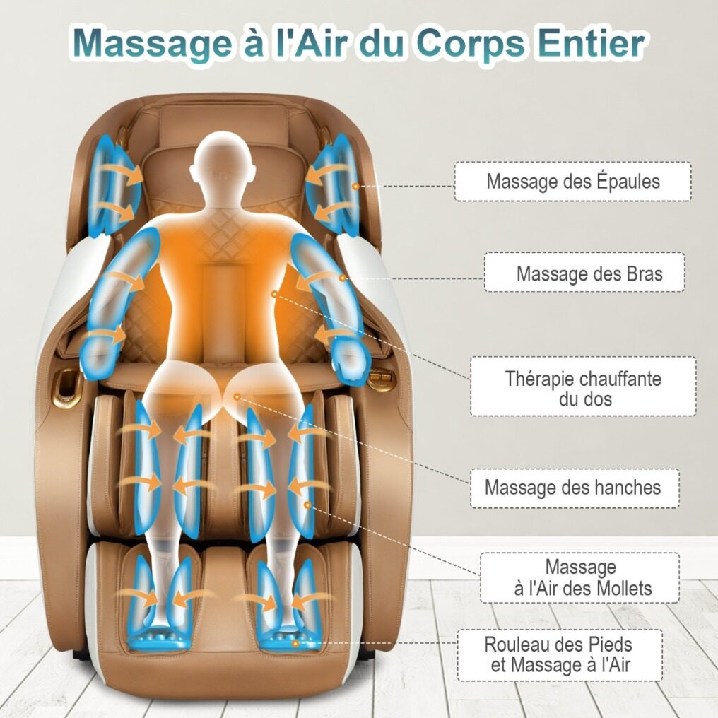 Our massage chair with ergonomic SL track allows you to elevate your legs for better blood circulation with a simple press of the zero gravity button. With 12 preset modes, 5 massage techniques and adjustable speed, intensity and width, it will meet your individual needs. The heating and air massage system is integrated. With voice control, color LCD controller and shortcut buttons, it ensures effortless operation. With built-in Bluetooth speakers, elevate your relaxation with this massage chair.