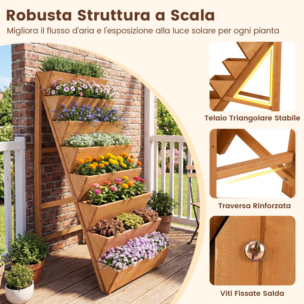 This vertical planter is made of natural fir wood, renowned for its high hardness and excellent compressive strength, ensuring resistance to warping and cracking even after prolonged use. Its multi-tiered structure maximizes vertical space, making it particularly suitable for compact balconies, garden corners, and other limited areas. The trapezoidal slope ensures each tier receives even sunlight, while also promoting air circulation and allowing vegetables, flowers, and herbs to grow in optimal conditions. In addition to being a practical growing tool, it also serves as an elegant decorative element that enhances any space.