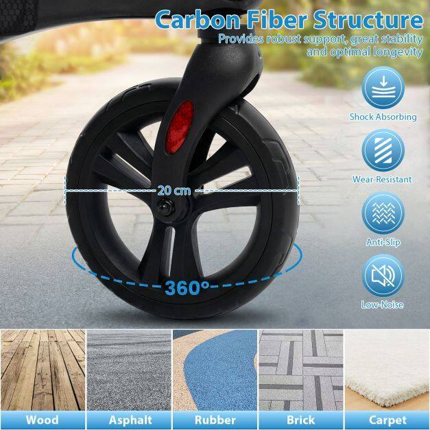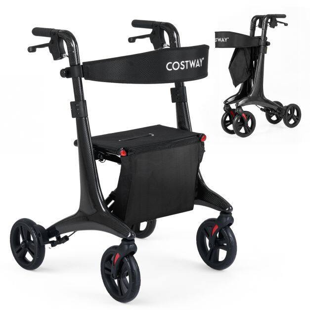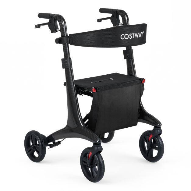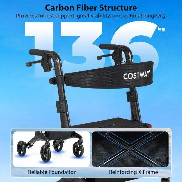 ● Ultralight Carbon Fiber Structure: Invest in reliability with the folding rollator walker crafted from premium carbon fiber, offering remarkable strength, stability, and durability to support users up to 300 lbs. Despite its rugged design, this rollator is lightweight at just 13.5 lbs, making lifting, carrying, and maneuvering effortless.