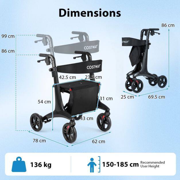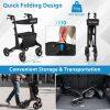 ● Quick Folding & Added Storage: Enjoy effortless storage and portability thanks to its easy quick folding mechanism. The lightweight rolling walker collapses swiftly for transportation, fitting seamlessly into car trunks, closets, or tight spaces. Moreover, a practical storage pocket gives you easy access to your personal essentials.