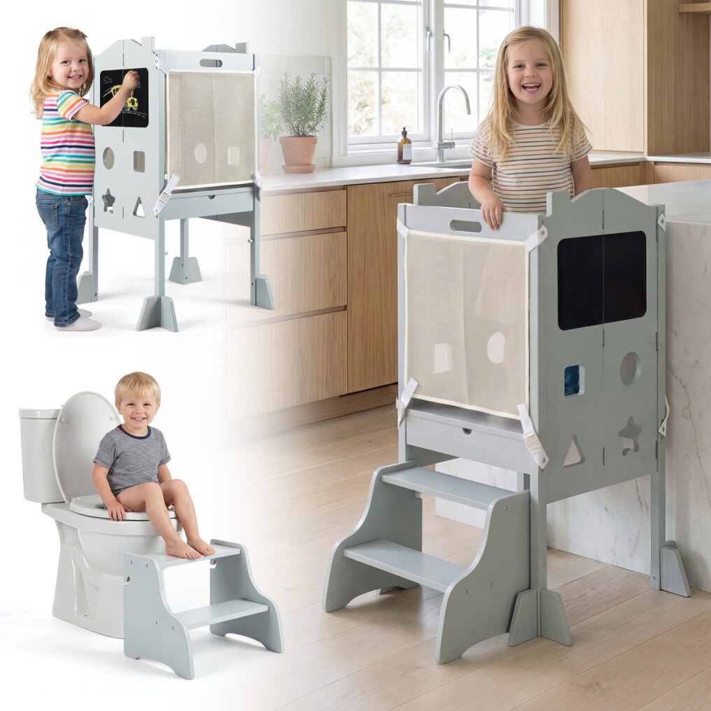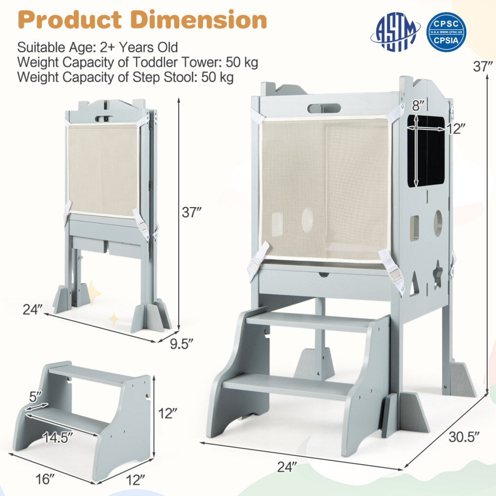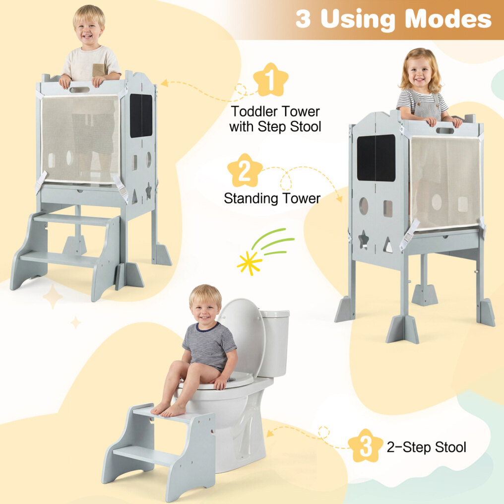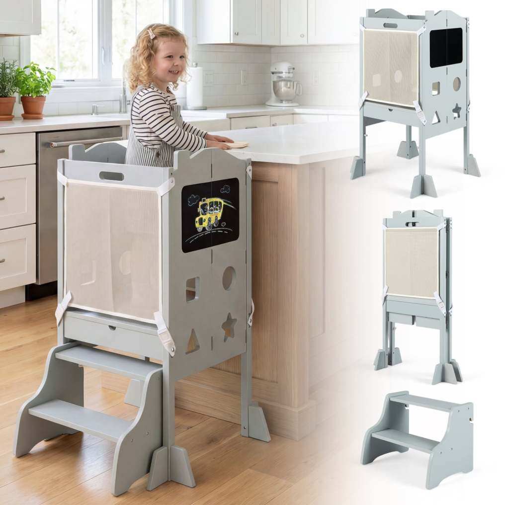 ● 3-in-1 Multifunctional Design: The step stool for toddlers features 3 using modes: toddler tower with step stool, standing tower, and 2-step stool. It will be a nice choice to help your child participate in housework, reach for items from heights, wash hands, or climb into bed independently.