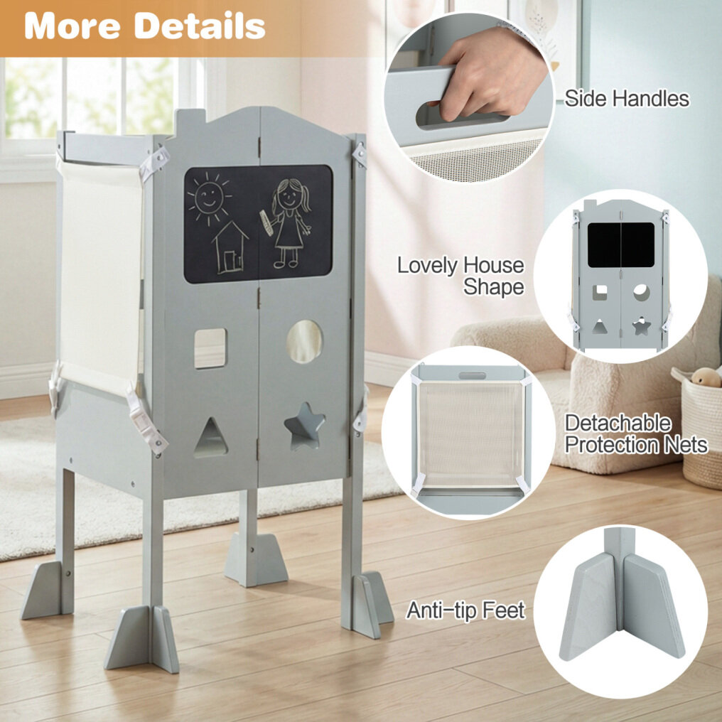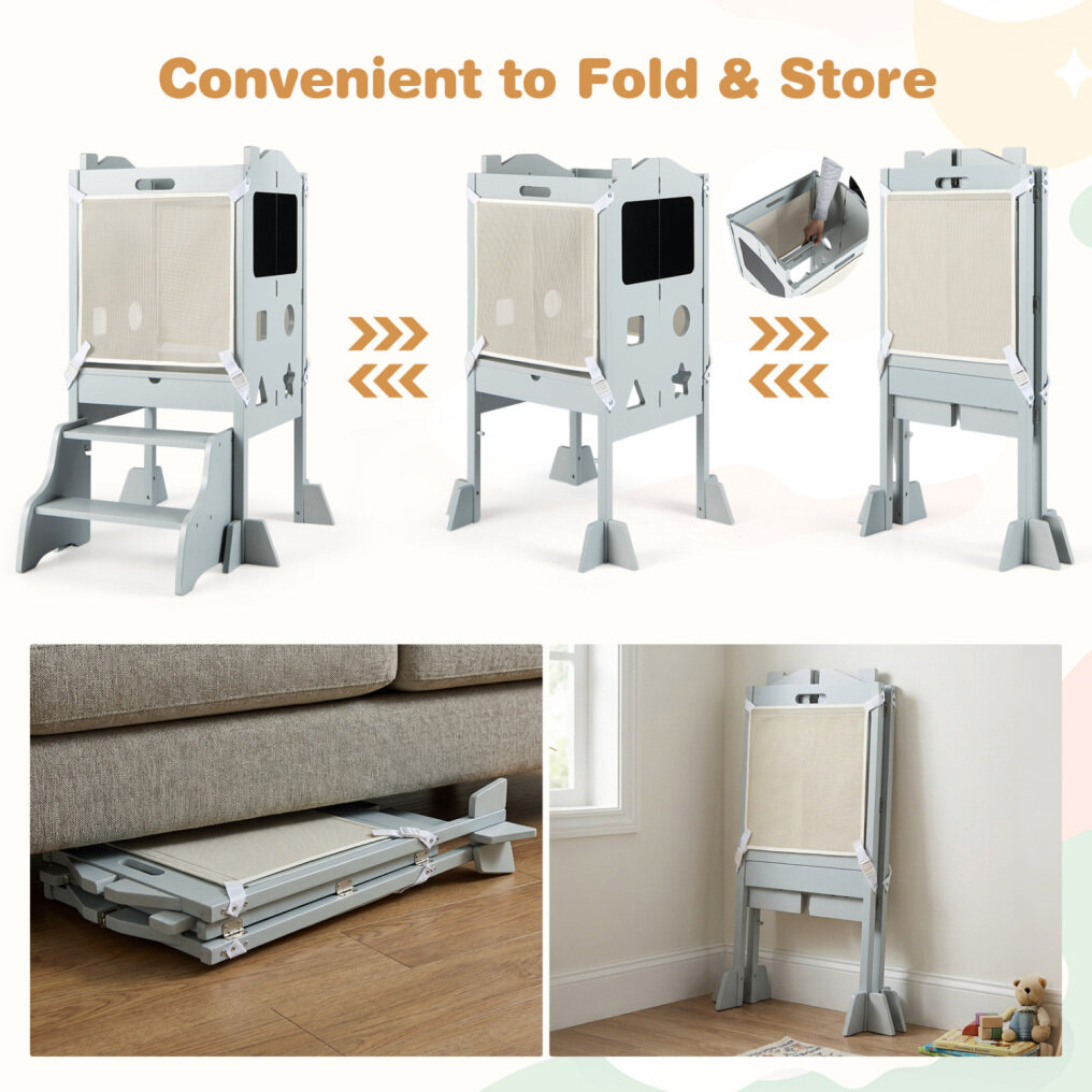 ● Convenient to Fold and Store: The toddler tower folds down neatly when not in use, making storage simple between the fridge and the wall or in a closet. The folded size is 24" x 9.5" x 37" (L x W x H), which won't take up too much floor space.