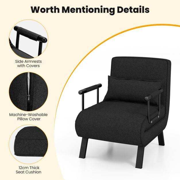 ● Transform Your Use Space: With modern design and chic style, the sleeper chair matches well with other furniture and adds aesthetic beauty to your home or office. Whether used for reading, sleeping, watching TV, playing games, sitting & lounging, it will be of great satisfaction. Note: Color discrepancies may occur between different light and monitor.