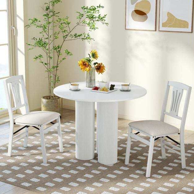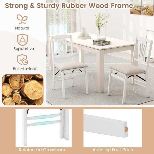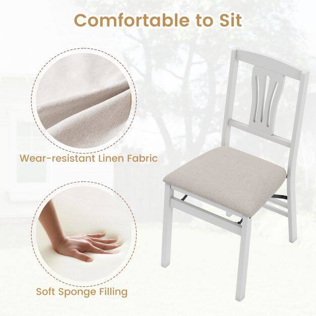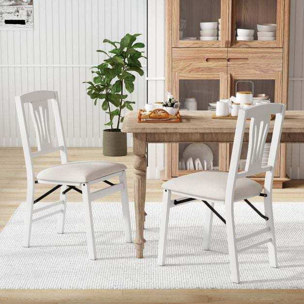 Folding Kitchen Chairs Set of 2 Upholstered Dining Chairs with Comfy Padded Seats-White
