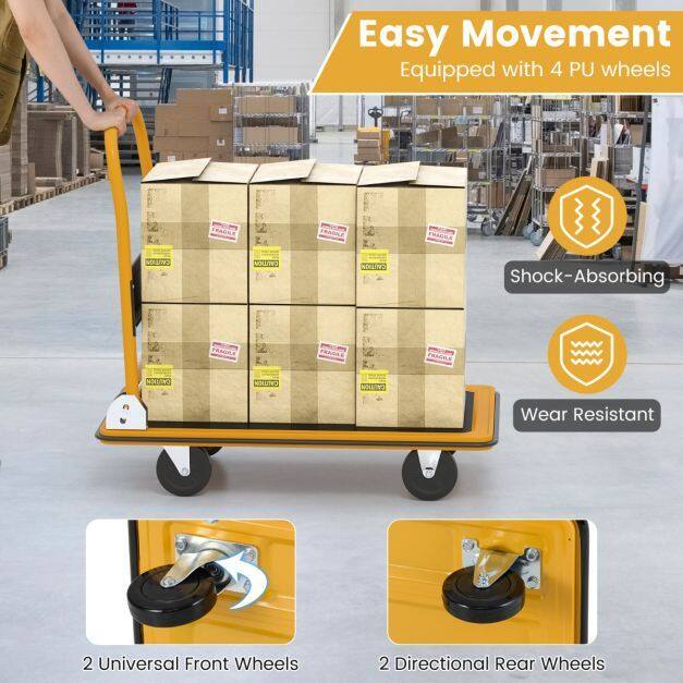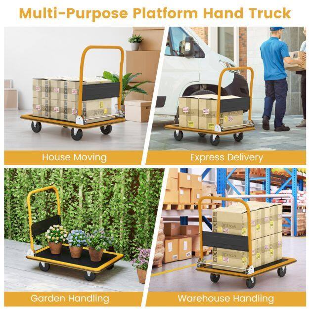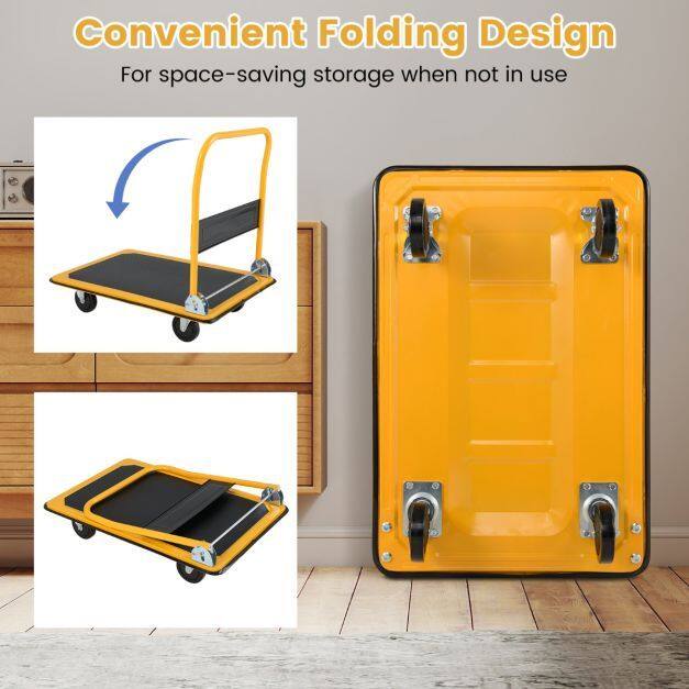 ● Durable and Sturdy Construction: Made of premium metal, this platform cart could hold a great amount of weight up to 660 Lbs and is not easy to be out of shape.