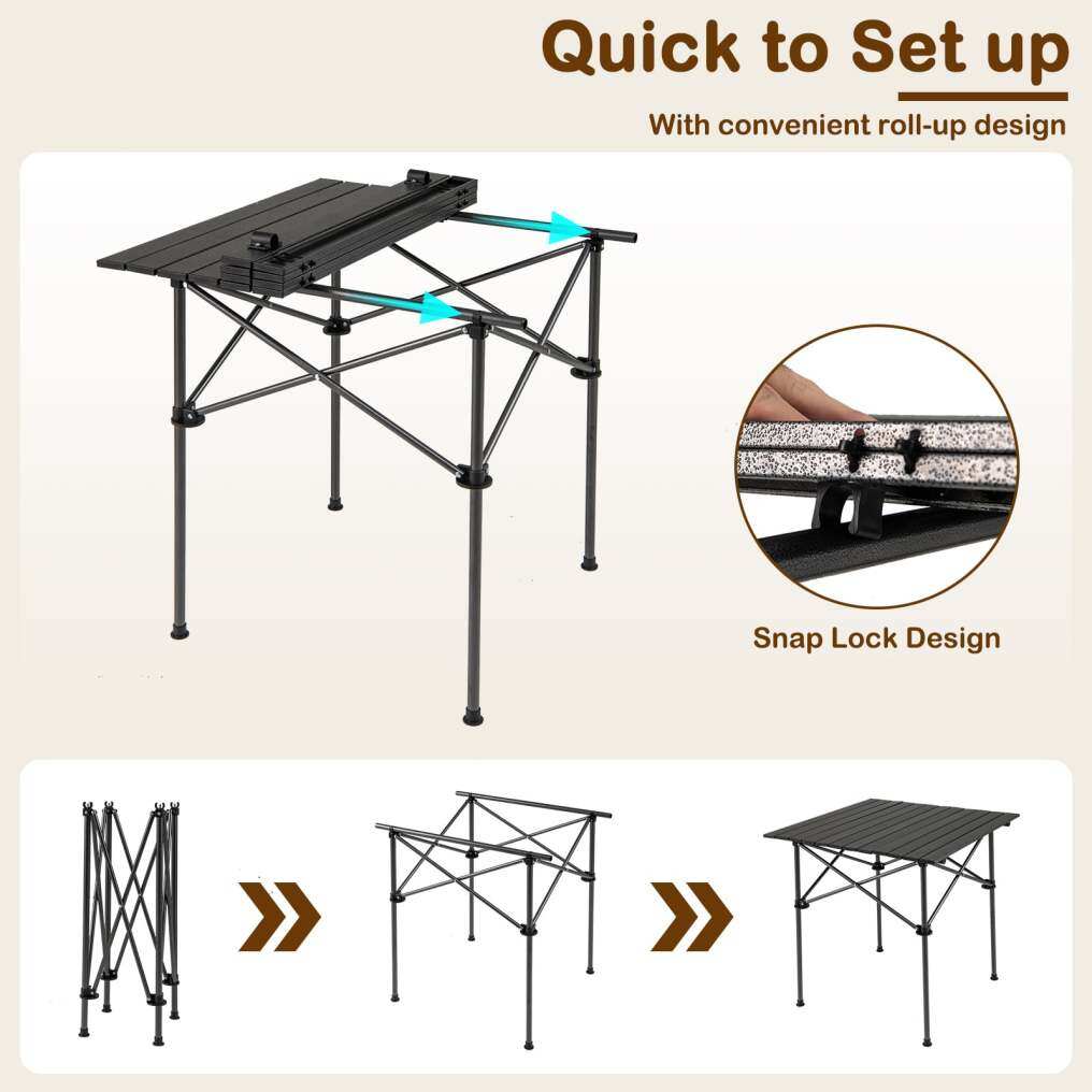 ● Quick Setup Design: Featuring a convenient roll-up design and snap lock system, this collapsible camping table sets up quickly without effort. Enjoy more time relaxing outdoors instead of struggling with complicated assembly.