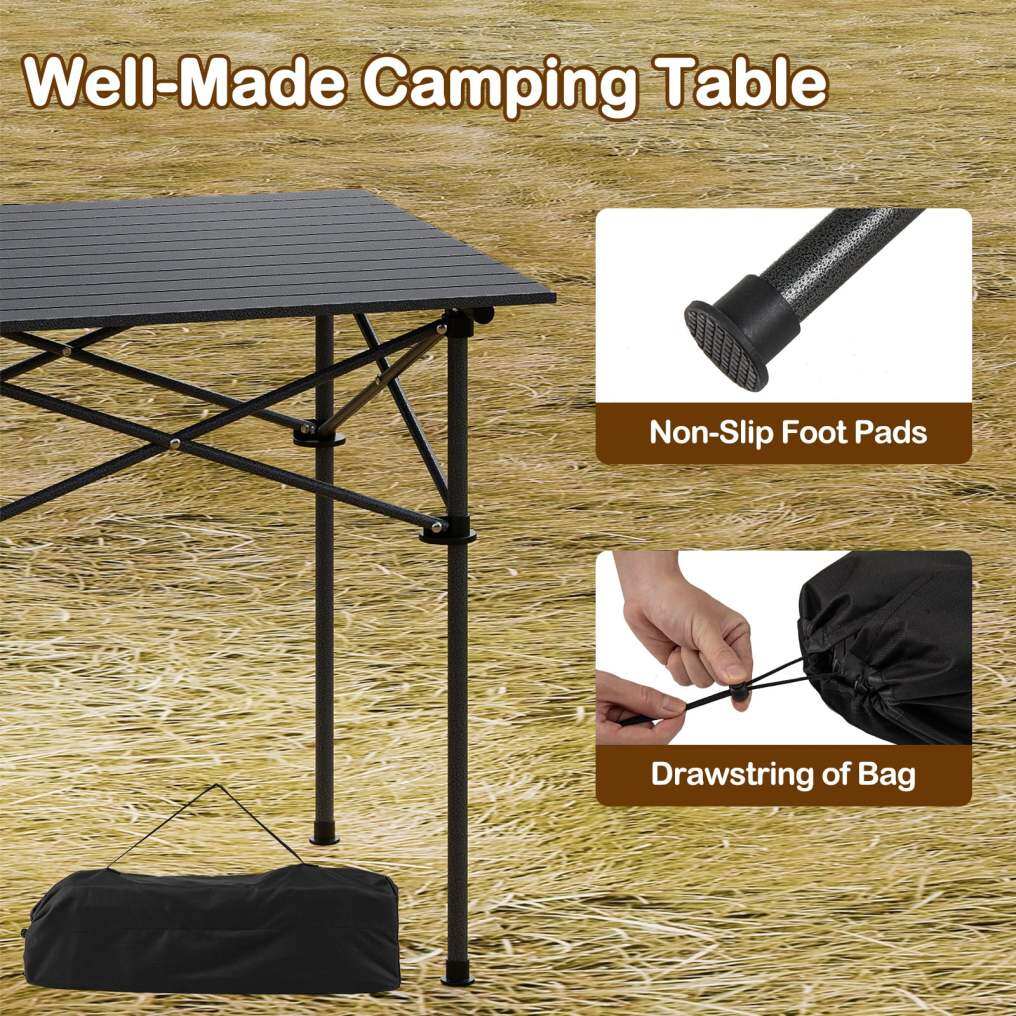 ● Travel-Friendly Design: This folding camping table features a collapsible and foldable structure and weighs only 8 lbs for added convenience. Moreover, the carrying bag included allows for effortless transportation and storage.