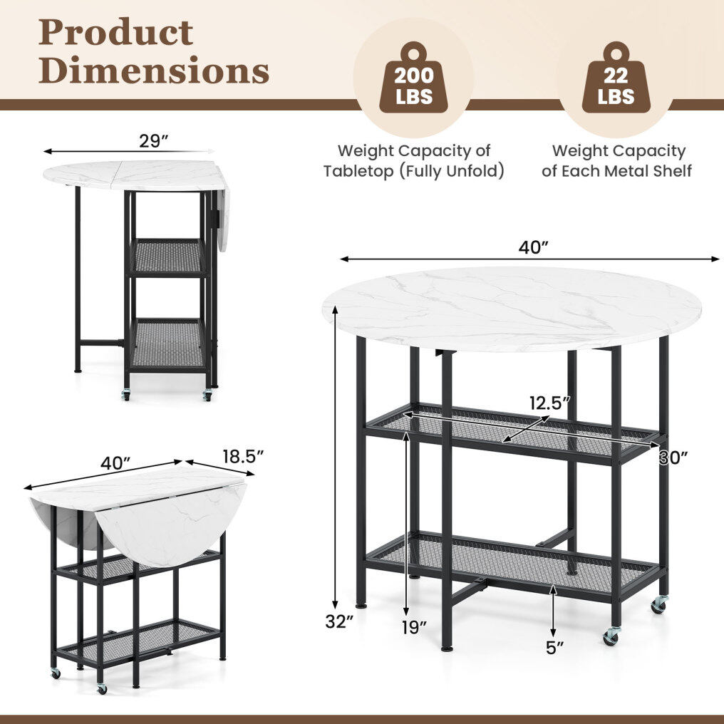 -Features 2 drop leaf panels, meet different needs, option to fold 1 or 2