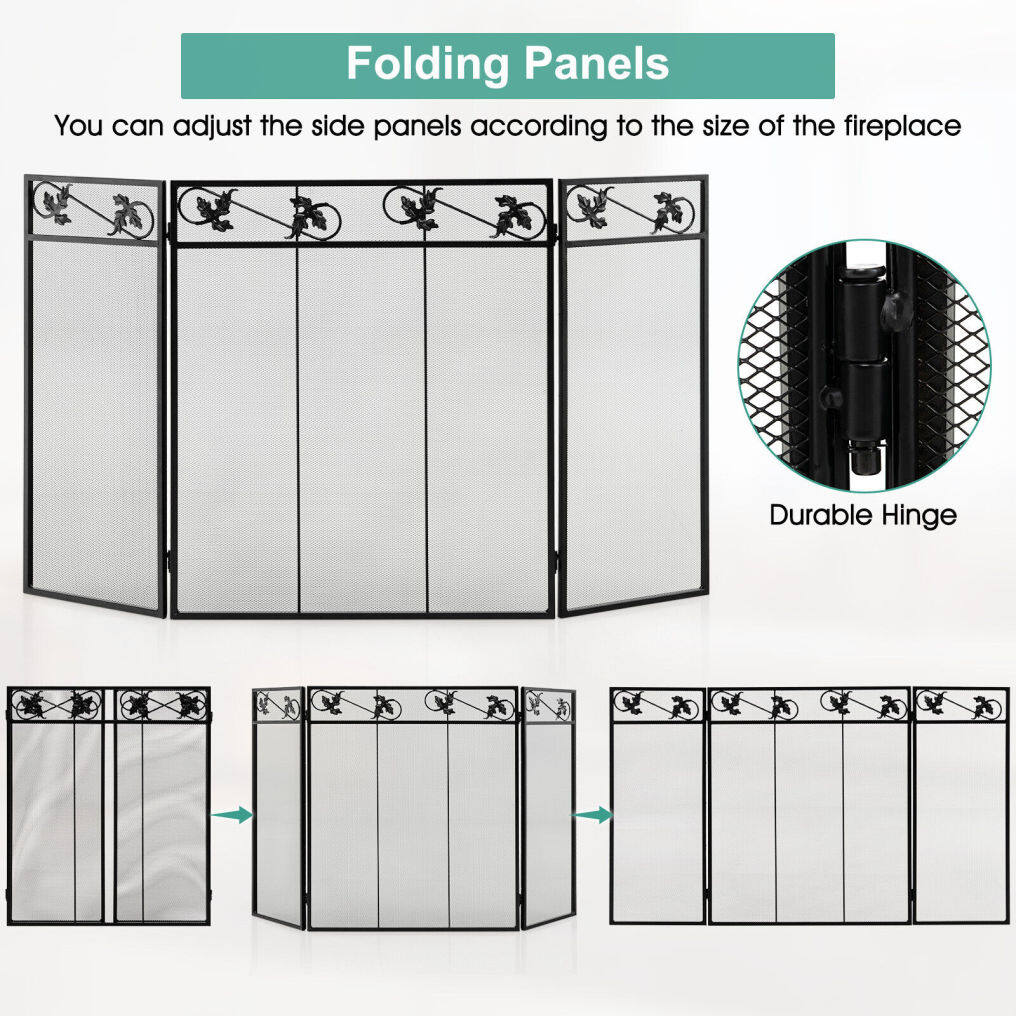 ● Folding and Portable Design: The fireplace screen with folding design makes it convenient for storage and transportation. What's more, 2 durable hinges in 3-panel design provide adjustable opening angles to fit fireplace of different size.